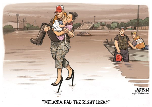 روزنو :در حاشیه حضور ملانیا ترامپ با کفش پاشنه بلند در هوستون برای بازدید از خسارت‌ های طوفان هاروی، سایت دیلی میل این کارتون را منتشر کرد.