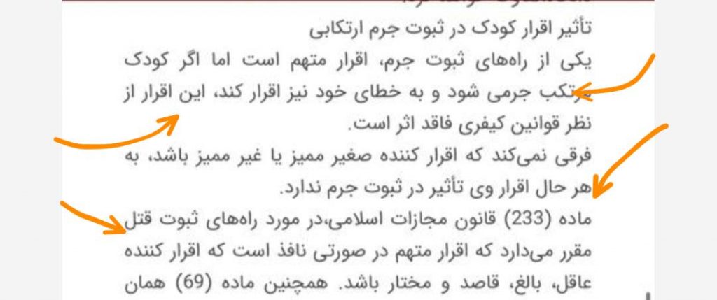 این مادر به سن پایین دخترش اشاره می‌کرد و از برخورد مستقیم قانونی با او گلایه داشت: دختر 14 ساله‌ی من طفل محسوب میشه! اطفال حتی اگر قتلی انجام داده باشند والدشان باید پاسخگو باشد! چند روز قبل انتخابات هم بوده. جوری بچه‌ی من رو می‌زنن که مردم از پنجره‌ها هم واکنش نشون میدن! موبایل کسی که عکس گرفته هم می‌گیرن!